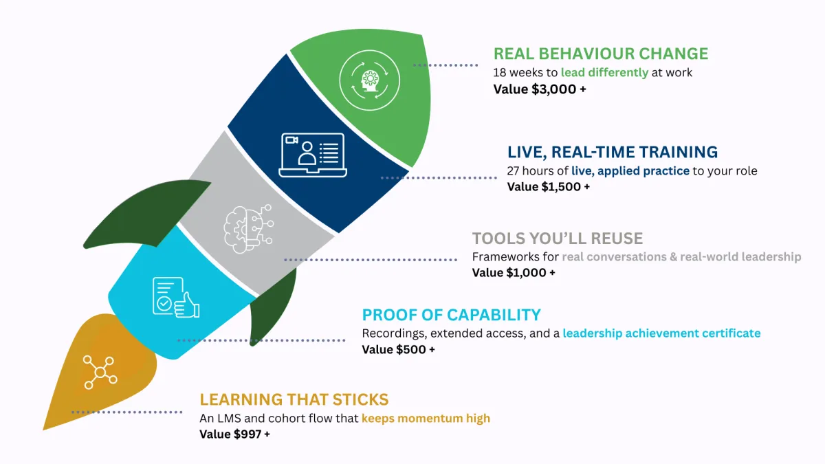 This program brings together the practical frameworks, behavioural psychology and real-world leadership conversations that help leaders move from accidental leadership to intentional leadership.